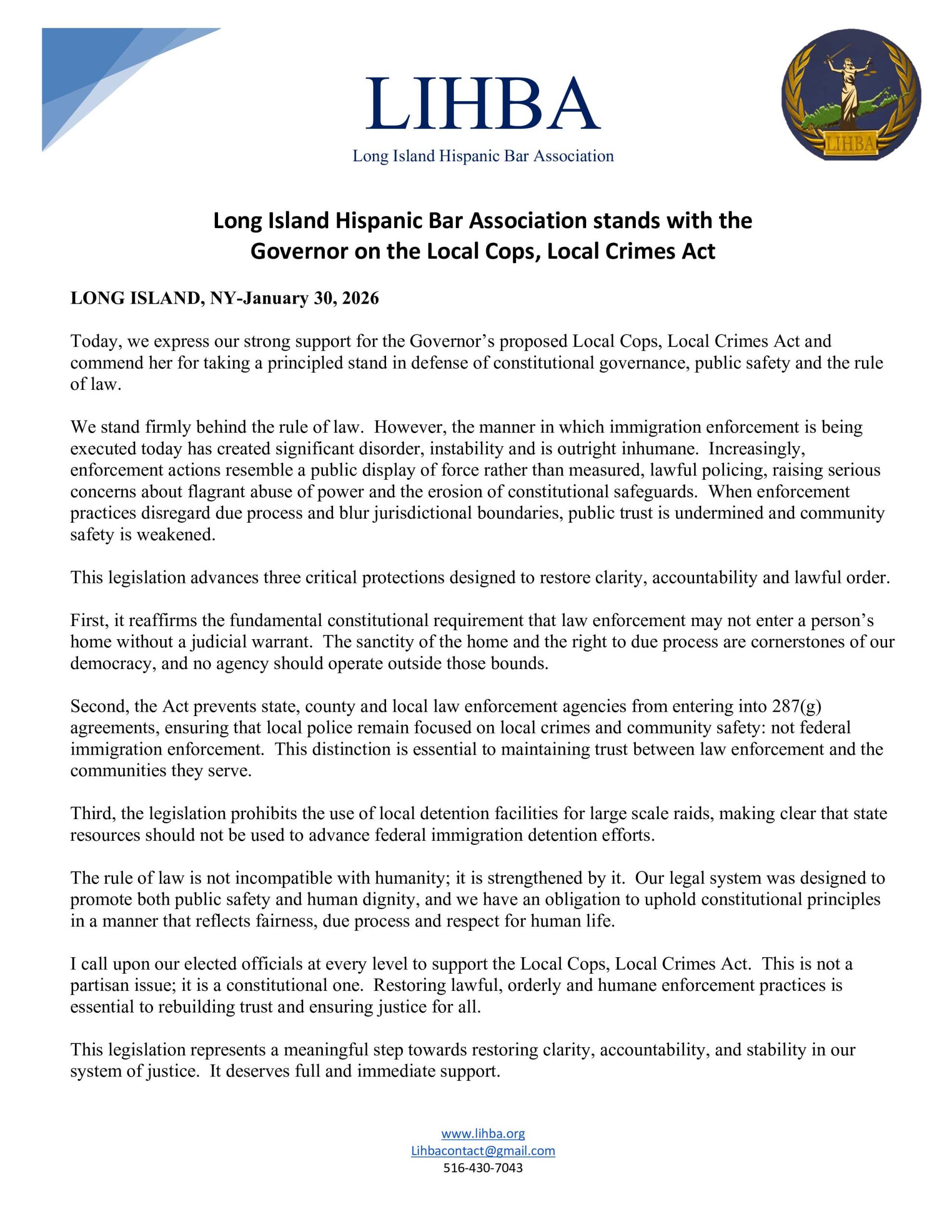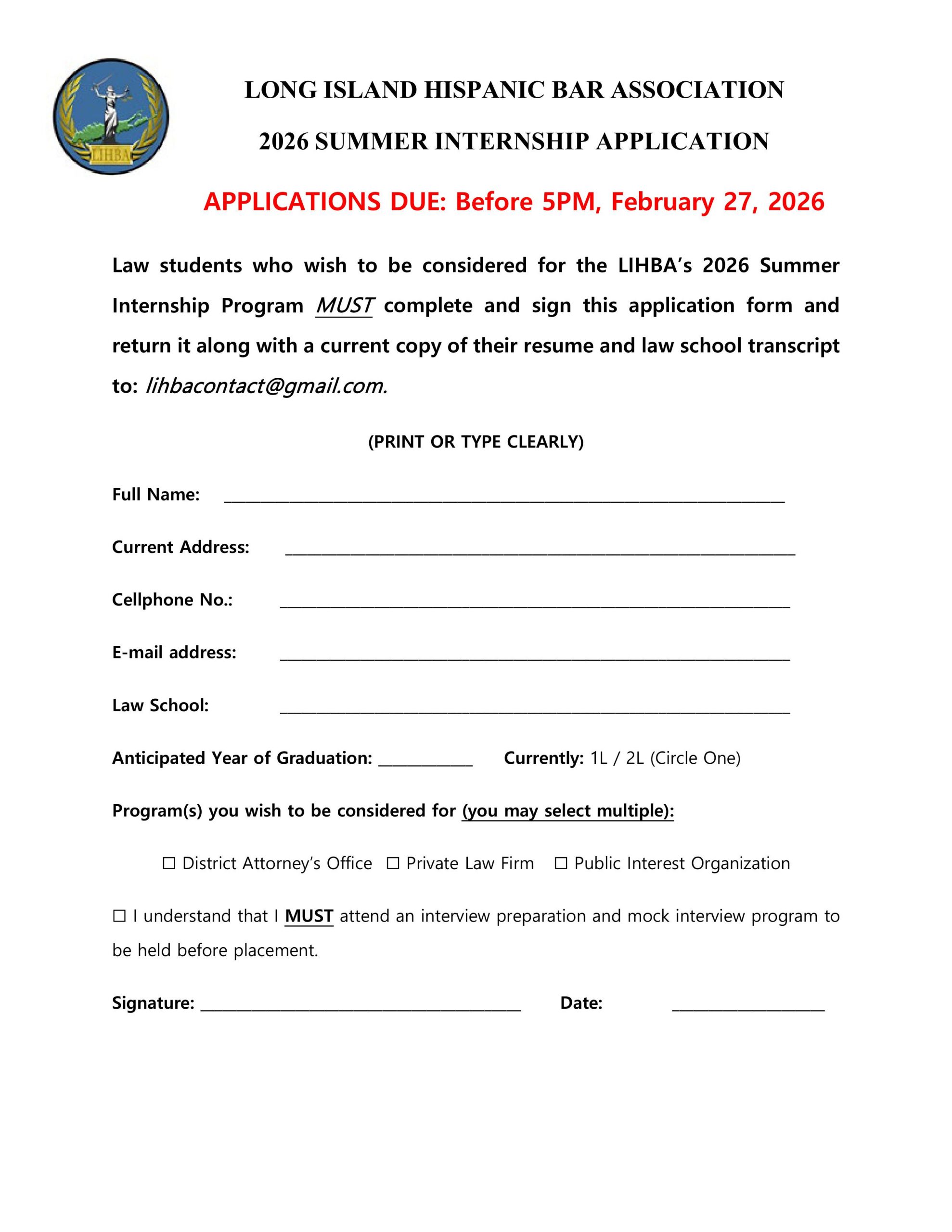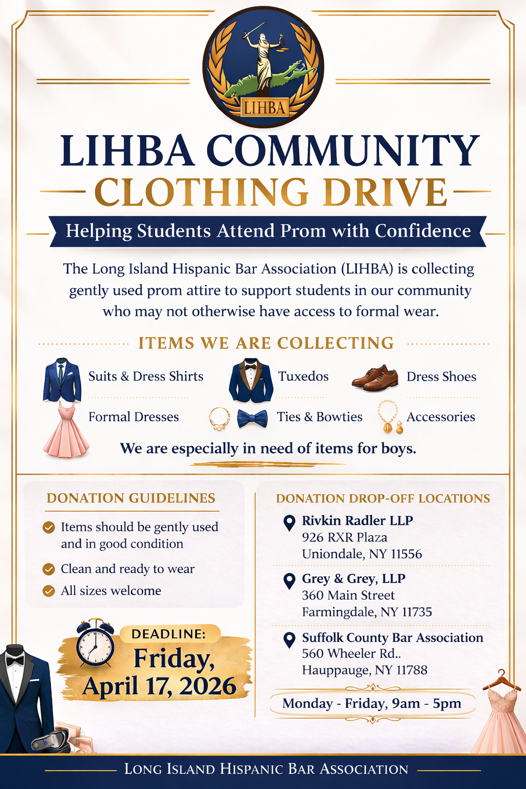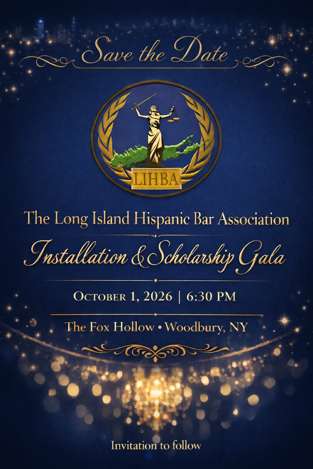 The Long Island Hispanic Bar Association works to advance the status of Hispanics both in the community and the legal profession through mentorships, legal education, leadership, community outreach, and promoting the proper administration of justice. LIHBA also hosts an annual Scholarship Gala in support of law students in our community. With the help of generous sponsors, LIHBA invests in the future and gives deserving law students the opportunity to continue studying while easing their financial burden.